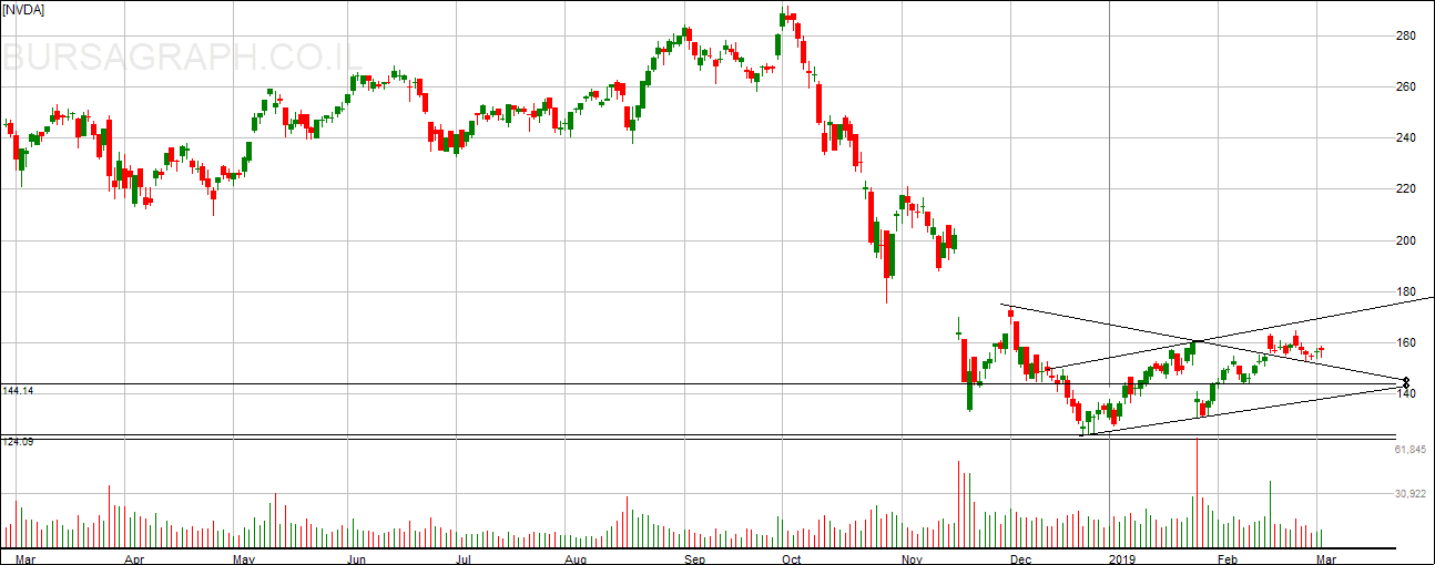 מסוף 2018 מתחילה להיווצר רצועה עולה אם כי בשיפוע מתון, לאחר שהמניה נגעה בגבול העליון של הרצועה היא חוזרת לרדת וכנראה שתעצור ברמת 140 תרחיש זה יכול שיקרה במשך 45 ימים הקרובים.