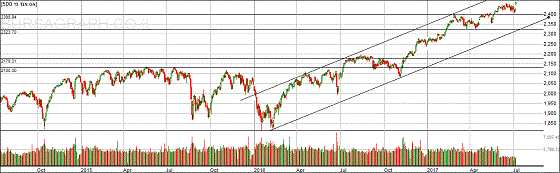 שוב נשברו השבוע שיאים של כל הזמנים ועדיין אין סימני חולשה. שיאים הושגו גם בדאו ג'ונס, ובראסל 2000. המגמה חיובית ונקודות השיא מסודרות בסדר עולה. קצב העלייה הוא כ-10% לשנה כך שיעד המחיר לסוף 2017 הוא סביב רמת ה-2,500, על פי קו המגמה- פלוס או מינוס 100 נקודות.