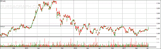 ביום חמישי האחרון עלה מדד ת"א 35 כמעט באחוז שלם בעוד שבשבועות האחרונים תנודה יומית של רבע אחוז נחשבה לתנועה חדה. אולי התנהגות זו מצביעה על שינוי ומרמזת על תנודת מחיר קרובה ופריצה של רצועת הדשדוש. בינתיים התחזית היא שאנחנו בגל עולה, איטי, שצפוי להחזיר את ת"א 35 לחלק העליון של רצועת הדשדוש, ב-1470-1475 נקודות. ככל שנתקרב יותר לחלק העליון של הרצועה, יגדלו הסיכויים לכך שפריצת הרצועה תהיה בסופו של הדשדוש כלפי מעלה.