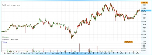 הגל העולה כבר מתחיל להתפתח וקנייה בשער של היום אינה מאפשרת כניסה עם יחס סיכוי/סיכון סביר. יש להמתין לתיקון עד שער 50,000 ורק אז לבצע קנייה. חיתוך הפסד צריך להתרחש ב-42,700 ויעד הרווח הוא כ-70,000.