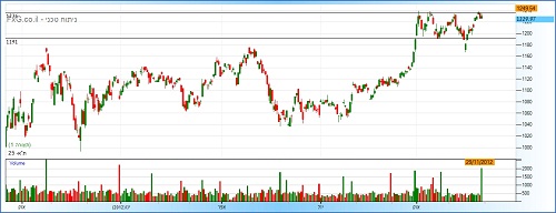 פער הארביטר'ג עומד על( 0.53%-) והוא אולי ישפיע על נטייה לירידה קלה וזמנית. השוק חיובי, המשך עלייה ופריצת רמת ה-1240 הוא האירוע שיצביע על סיום התיקון וחזרה למסלול עלייה ואני מאמין שהוא יתרחש השבוע ויביא אחריו תנודת מחיר חדה מעלה שתהייה המשך ישיר לתנועה שהתחילה בפריצה של רמת ה-1140, נעצרה ב-1240 והפכה לדשדוש בתחום של 1190-1240.