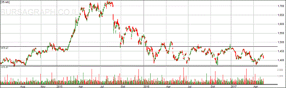 אנחנו בגל עולה מעלה בתוך רצועת הדשדוש. רמת ה-1380החזיקה מעמד והמחיר נשאר מעליה ומכאן יש לצפות לעלייה איטית עד חזרה לחלק העליון של הרצועה ב-1470. התנהגות שכזו מגדילה את הסיכויים לכך שפריצת הרצועה תהיה בסופו של הדשדוש כלפי מעלה.