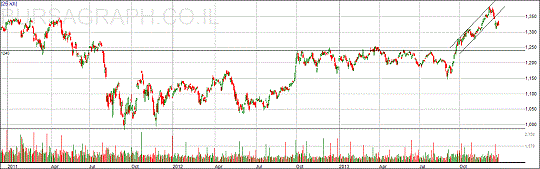 חולשת מדד ת"א 25 ברורה לעין. מפריצת רצועת המסחר של 1240 נקודות עלה ת"א 25 עד לשיא של 1380 שהוא 11% של עלייה וירד בחזרה כ-5% תוך שבועיים. למרות זאת, מבנה המחיר חיובי ויש לצפות לחזרה למסלול עלייה עד לשבירת השיא של 1380. ההבדל הוא שקצב העלייה נמוך יותר ופריצת השיא הזה עשויה לקחת כמה חדשים.