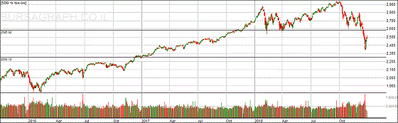 להלן גרף של מדד האס אנד פי 500 לשלוש השנים האחרונות