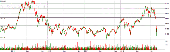 התמיכה ברמת ה-1550 נשברה מטה ביום חמישי לפני 10 ימים והמבנה בת"א 35 כבר לא חיובי. המשך הירידה ביום ראשון של השבוע האחרון החזיר את המדד לרצועת היציבות בה שהה ת"א 35 בשנים 2016-2017 כפי שניתן לראות על הגרף. מאז חזר לרצועה, הספיק מדד המעוף לרדת עד לתחתית הרצועה, התמיכה ברמת ה 1380 נקודות וגם לעלות לחלקה העליון, ההתנגדות ברמת ה-1480. ההתנגדות והתמיכה שברצועת היציבות משמעותיות ביותר והתחזית הטובה ביותר שאוכל לתת היא שת"א 35 יתנהל בתוך הרצועה למשך שלושה חדשים לפחות לפני שישבור מטה את רמת ה-1380 וימשיך לרדת.