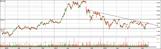 מדד ת"א 25 נמצא במגמה שלילית. בירידה של סוף יוני שבר ת"א 25 שפל נמוך יותר ובכך סיפק אישור נוסף שהמגמה שלילית. אחרי הבחירות בארצות הברית ירד מדד ת"א 25 אל מתחת לרמת ה-1380 נקודות. למרות שהירידה הייתה לזמן קצר מאוד ולכן לא נחשבת לשבירה של התמיכה ב-1380, היא יצרה שפל נמוך יותר שמתאים למגמת הירידה ומחזק את ההנחה שהשוק שלילי.