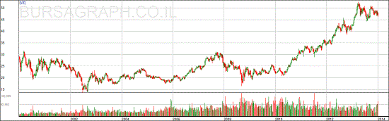 להלן גרף מניית וריזון ל-14 השנים האחרונות