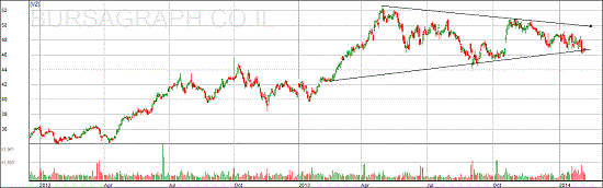 אסטרטגיה שניתן לאמץ היא קנייה במחיר של היום, חיתוך הפסד אם המחיר ירד אל מתחת לשפל של ספטמבר 2013 ברמה של 44$. צורת פעולה כזו תקטין את הסיכוי למכור אם המגמה אכן חיובית שכן שפל נמוך יותר לא אמור להתרחש במגמה עולה.
