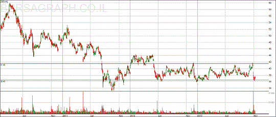 מחירה של טבע נמצא בכ-37% מהשיא של 60$ בו הייתה במרץ 2010 אבל למרות הירידה המשמעותית ניתן לזהות התייצבות של המחיר בשנה וחצי האחרונות. טבע מתנהלת במחיר 36.5$-41.5$ כאשר ההודעה על הליך התייעלות ופיטורין העלתה את המחיר לגבול העליון בעוד התפטרות המנכ"ל ג'רמי לווין הביאה את המחיר לגבול התחתון אבל אף אחד מהאירועים לא שינה את מצב היציבות. אנו יודעים שפעמים רבות אחרי מצב של יציבות מגיעה תנועת מחיר חדה וזה מה שאפשר לצפות לו בטבע. כיוון הפריצה לא ידוע אבל קיים סיכוי רב יותר לפריצה מעלה. כל שנותר הוא להמתין ליציאה מהרצועה ולהגיב בהתאם, בפריצה מעלה לרכוש מניות ובשבירה מטה לקנות אופציות פוט או למכור את המניה בשורט.